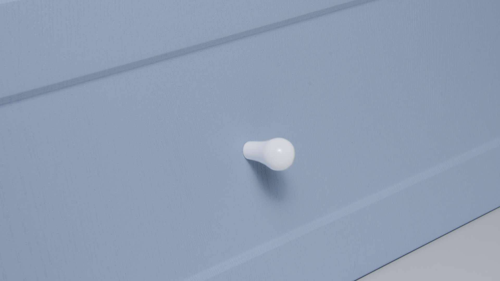 Ручка гармонично сочетается с фасадами, выполненными в матовой покраске, с рельефной текстурой или натуральными материалами — деревом, камнем, металлом. Подходит для интерьеров в стилях минимализм, джапанди, неоклассика, лофт и стильный модерн, добавляя в пространство светлый, свежий и современный акцент.
