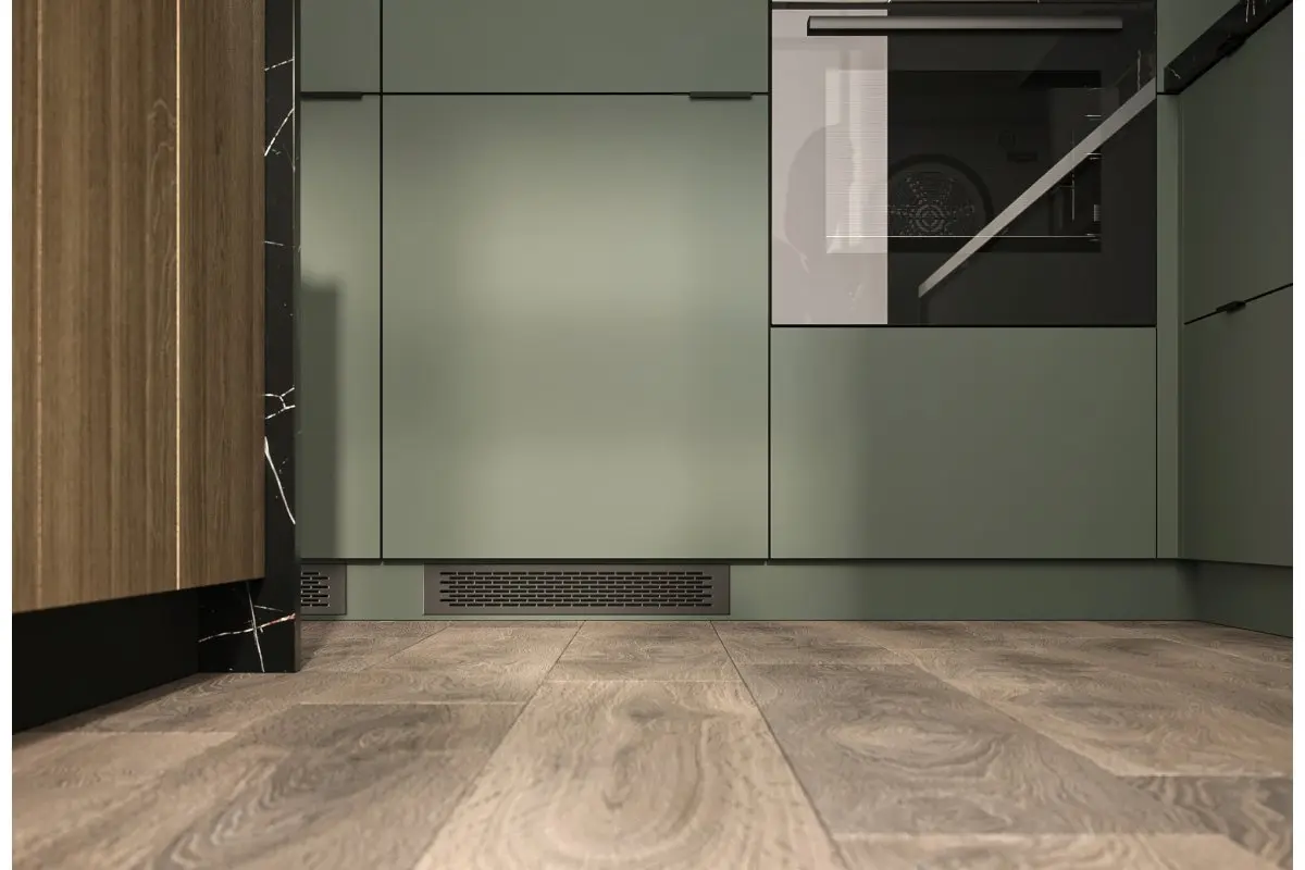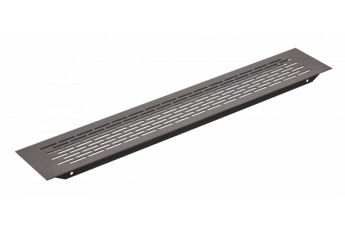 Решетка вентиляционная 480x80 мм, черная - элемент системы обмена воздуха в помещении, специально предназначенный для наружной установки в мебельное изделие. Решетка закрывает вентиляционное отверстие и обеспечивает нормальную циркуляцию воздуха.Назначение мебельной решетки для вентиляции включает предотвращение скапливания влаги в мебельных конструкциях, расположенных на кухне или в ванной комнате, защиту встроенной бытовой техники (холодильник, духовой шкаф) от перегрева, а также декоративную функцию, украшая интерьер в зависимости от персональных эстетических предпочтений.