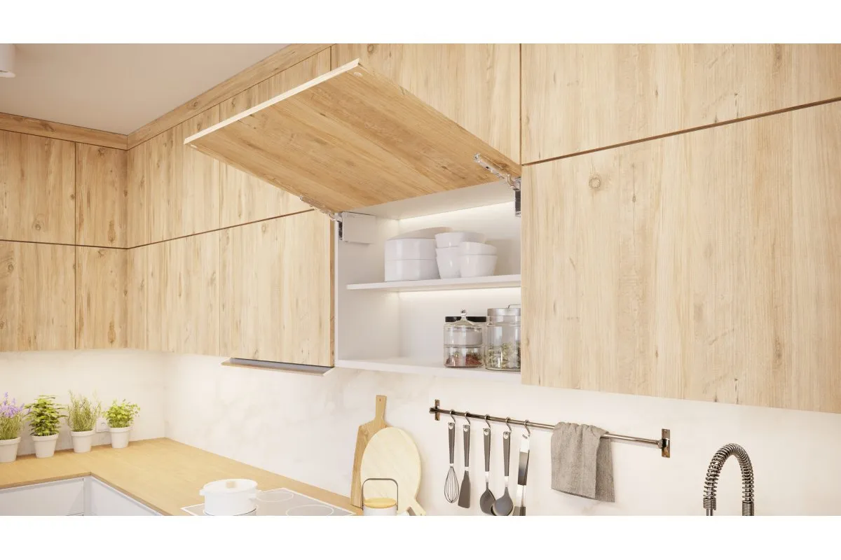 Назначение Механизм предназначен для горизонтального открывания фасадов высотой от 350 до 650 мм. Обеспечивает надёжную фиксацию и плавное закрывание благодаря встроенному доводчику. Устанавливается с обеих сторон фасада — слева и справа.