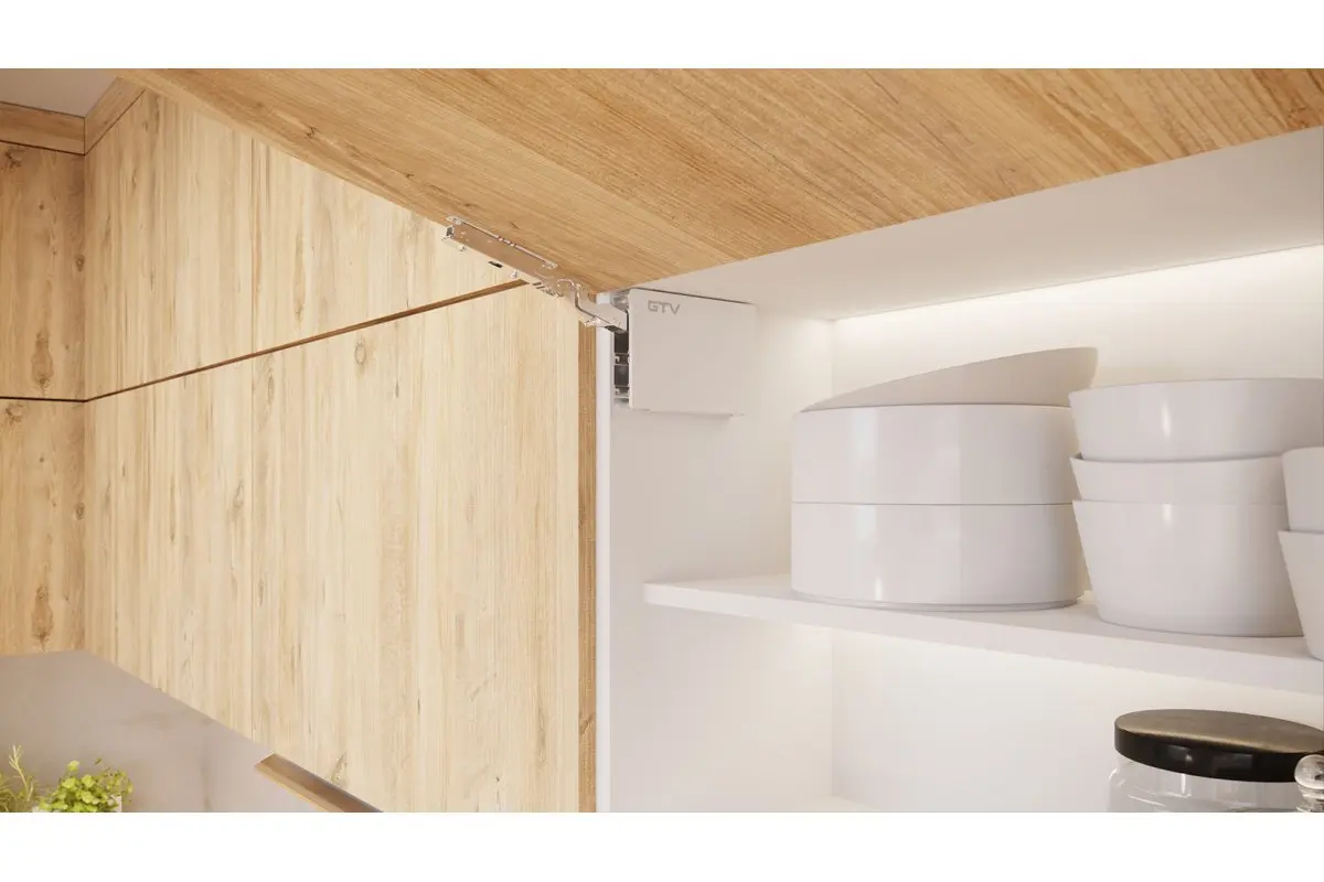 HORIZON push to open – функциональный мебельный подъёмник с белым покрытием, обеспечивающий удобное открывание фасада без ручек благодаря механизму push to open. Компактный дизайн и простая установка делают его отличным решением для современных интерьеров. Подъемник оснащён регулировкой силы открывания, времени закрывания и угла открытия в диапазоне 90°-107°, при этом минимальный угол активации доводчика составляет 45°, а минимальная глубина модуля – 200 мм.В комплект входят подъемники (левый и правый), декоративные заглушки, крепления фасада, монтажные шурупы, ограничители угла открывания и амортизатор Salto Nova.